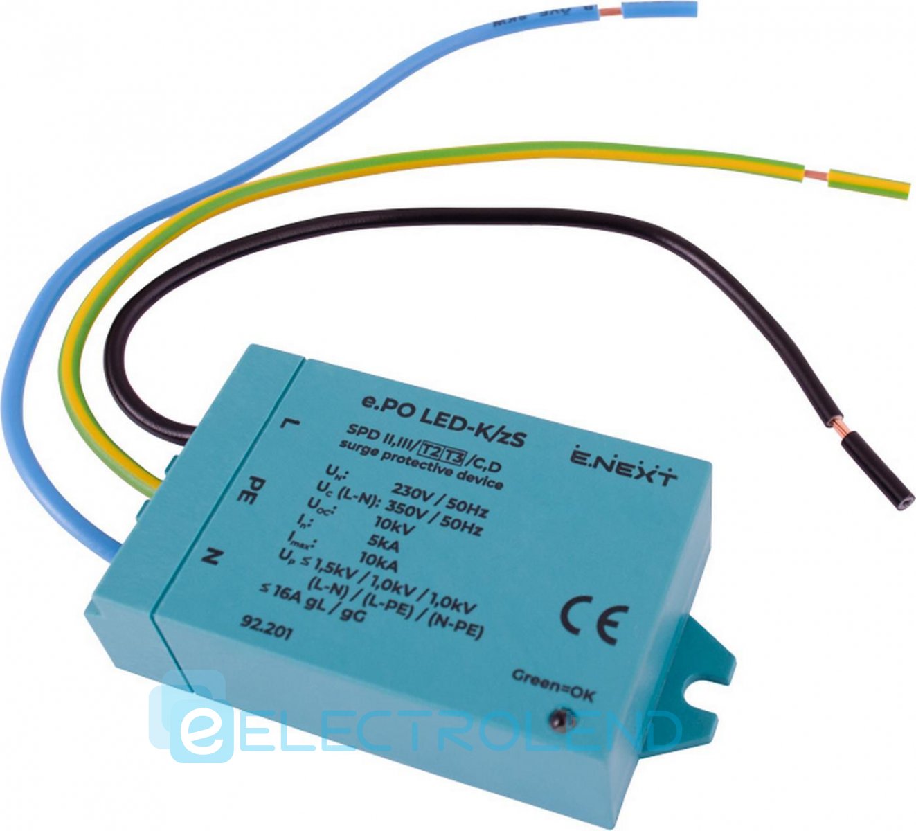 ПЗІП PO LED-K/zS клас II+III, 1 полюс + N-PE, для LED освітлення 92.201