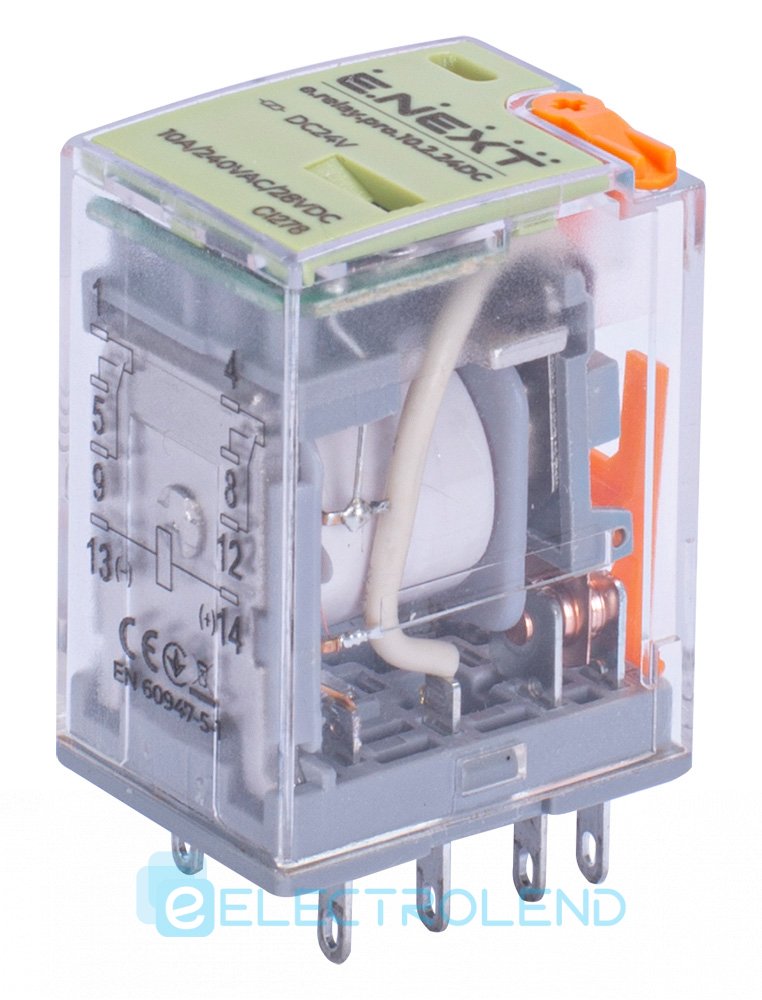 Реле проміжне e.relay.pro.10.2.24DC, 10А, 2 групи контактів, котушка 24В DC p091006