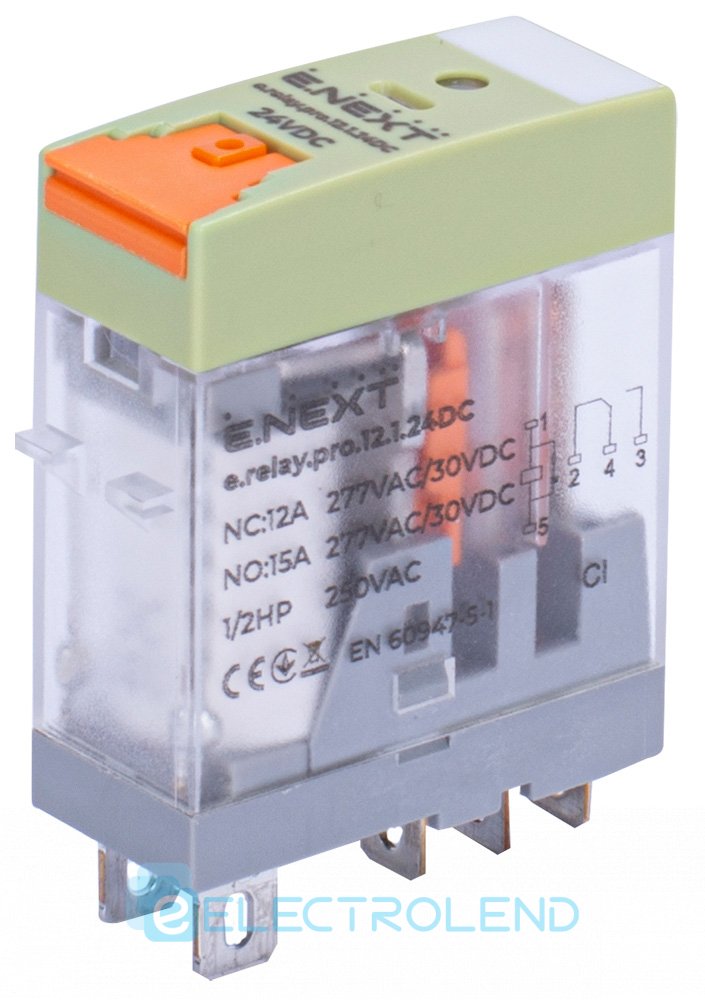 Реле проміжне e.relay.pro.12.1.24DC, 12А, 1 група контактів, котушка 24В DC p091002