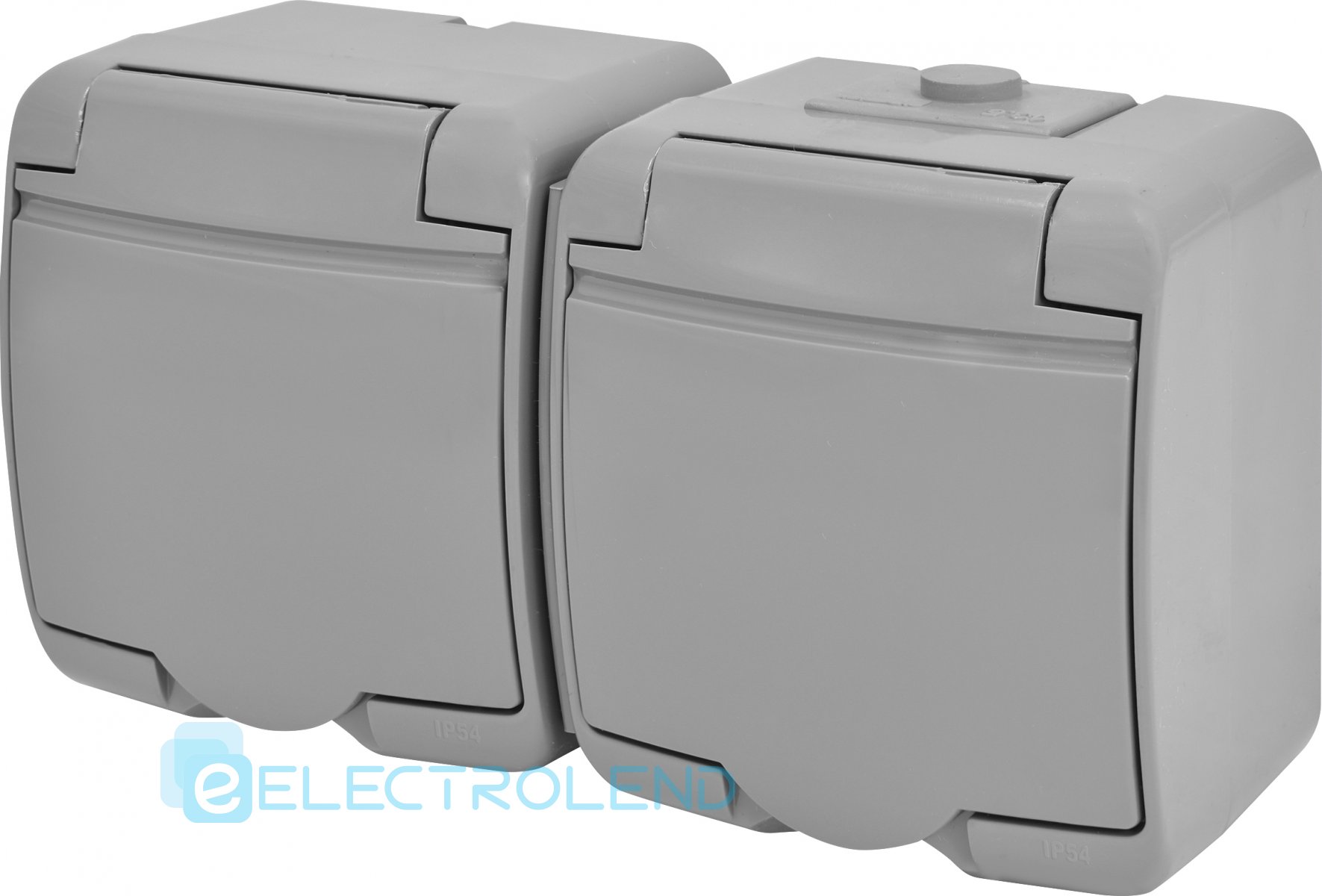 Розетка 2-на з з/к Schuko RHE-2s-SR (сіра/сіра кришка, IP54) ETI 4668072