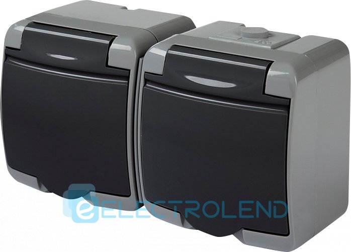 Розетка 2-на з з/к Schuko RHE-2s-SRG (сіра/графіт. кришка, IP54) ETI 4668107