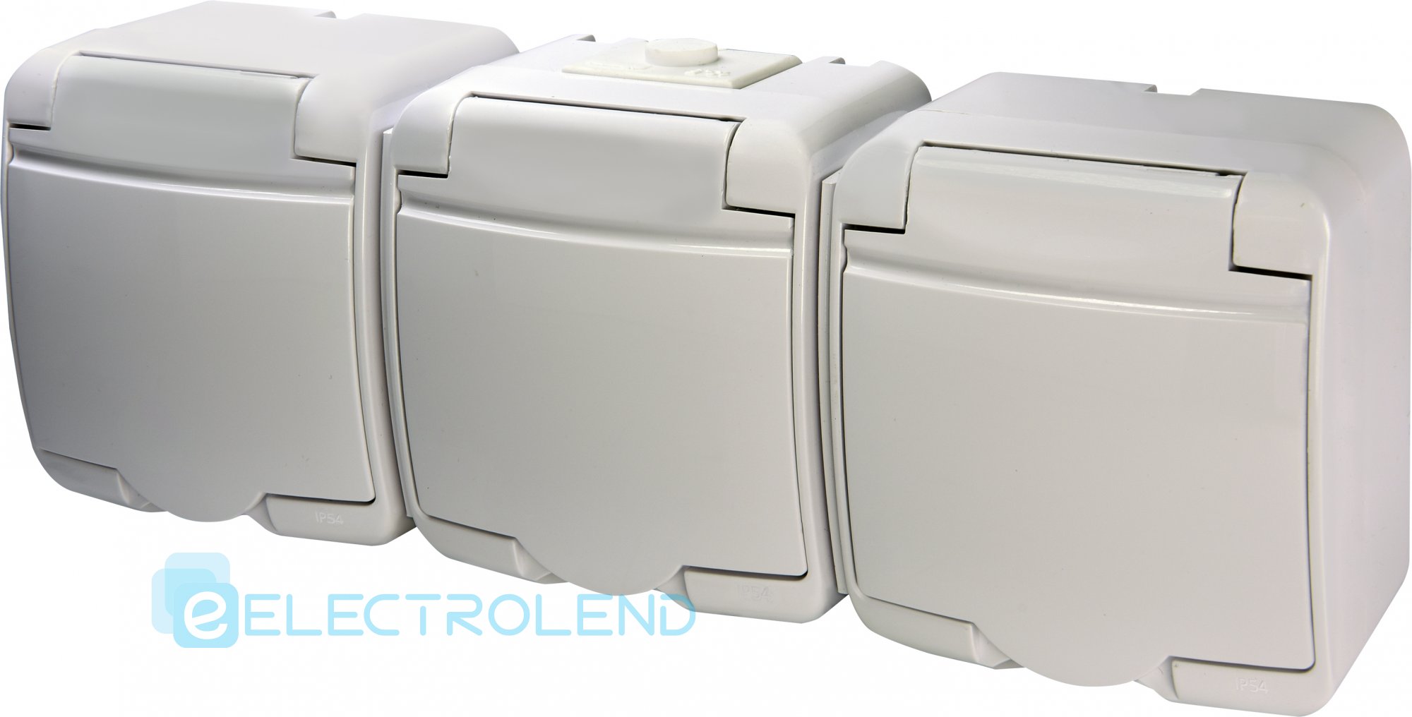 Розетка 3-на з з/к Schuko RHE-3s (біла/біла кришка, IP54) ETI 4668023