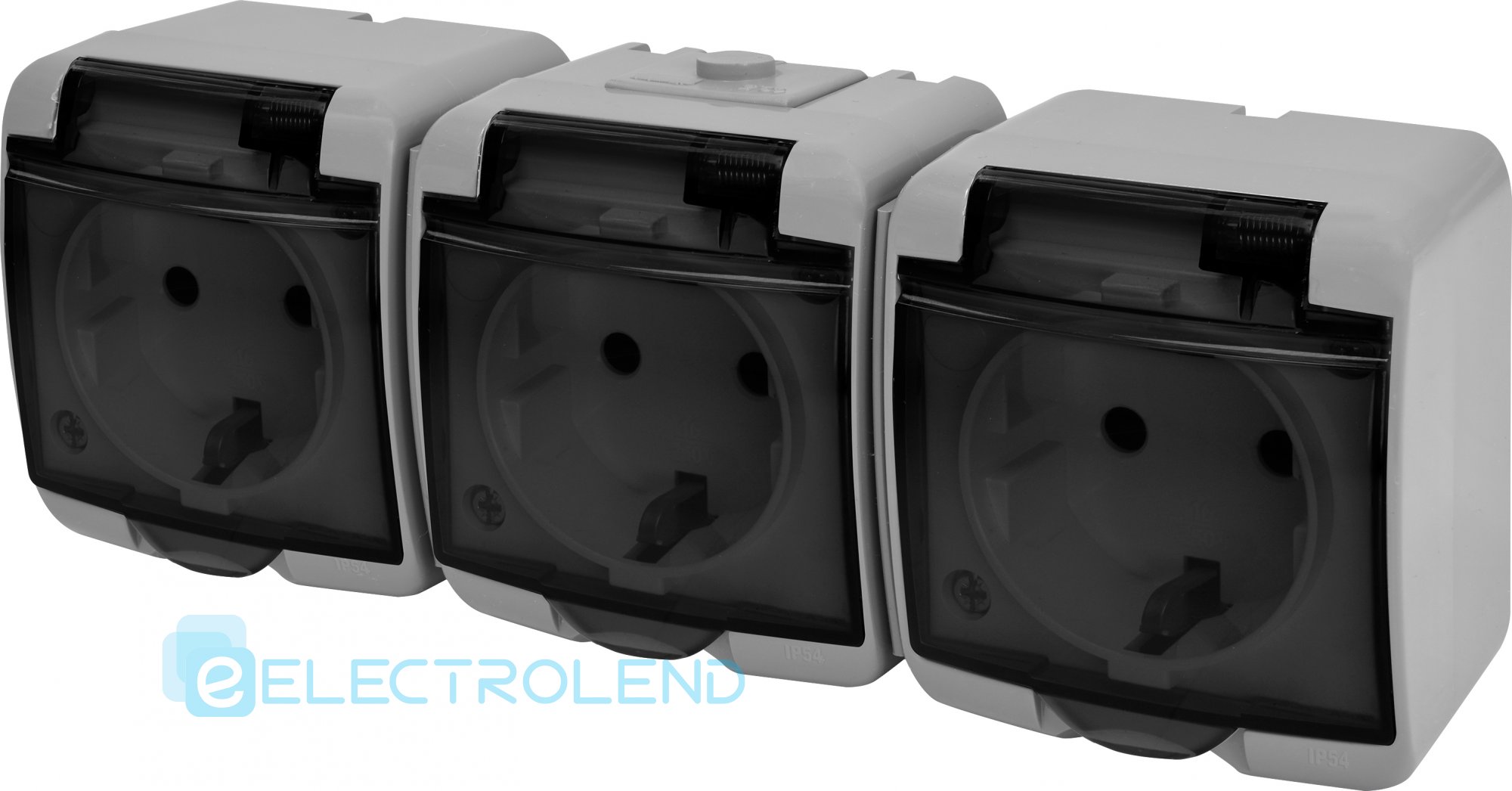 Розетка 3-на з з/к Schuko RHE-3sd-SR (сіра/прозора кришка, IP54) ETI 4668075