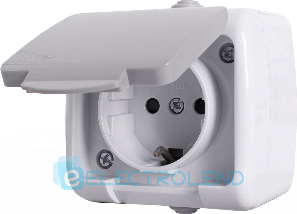 Розетка одинарна e.aqua.1231.grg з з/к, для зовнішнього монтажу, IP54, сірий s035066
