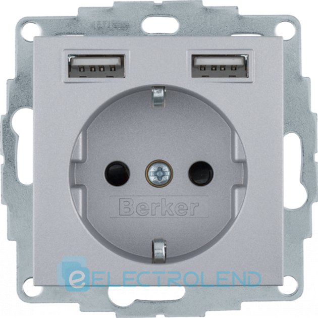 Розетка з з/к 16А/250В + 2хUSB A-A /2.4A, алюміній S.1 Berker 48031404