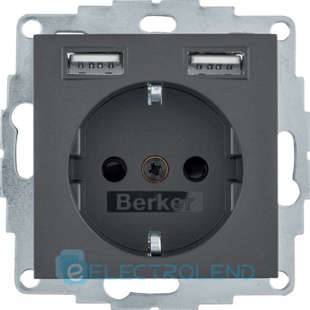 Розетка з з/к 16А/250В + 2хUSB A-A /2.4A, антрацит S.1 Berker 48031606