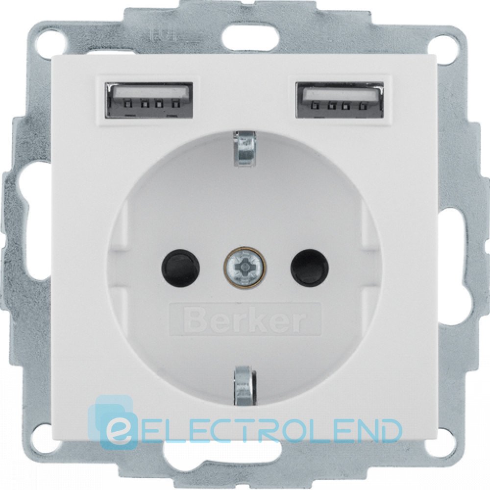 Розетка з з/к 16А/250В + 2хUSB A-A /2.4A, біла S.1 Berker 48038982