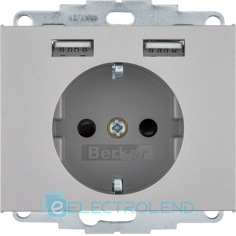 Розетка з з/к 16А/250В + 2хUSB A-A /2.4A, нерж.сталь-лак K.5 Berker 48037004