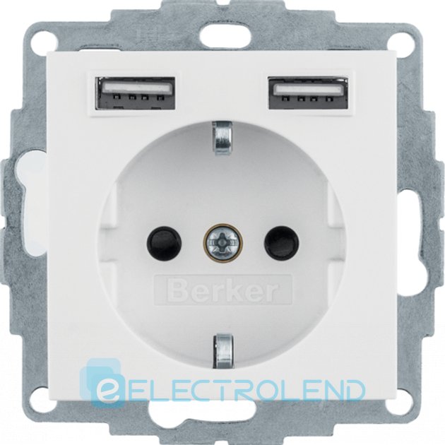 Розетка з з/к 16А/250В + 2хUSB A-A /2.4A, пол.білизна-matt S.1 Berker 48031909