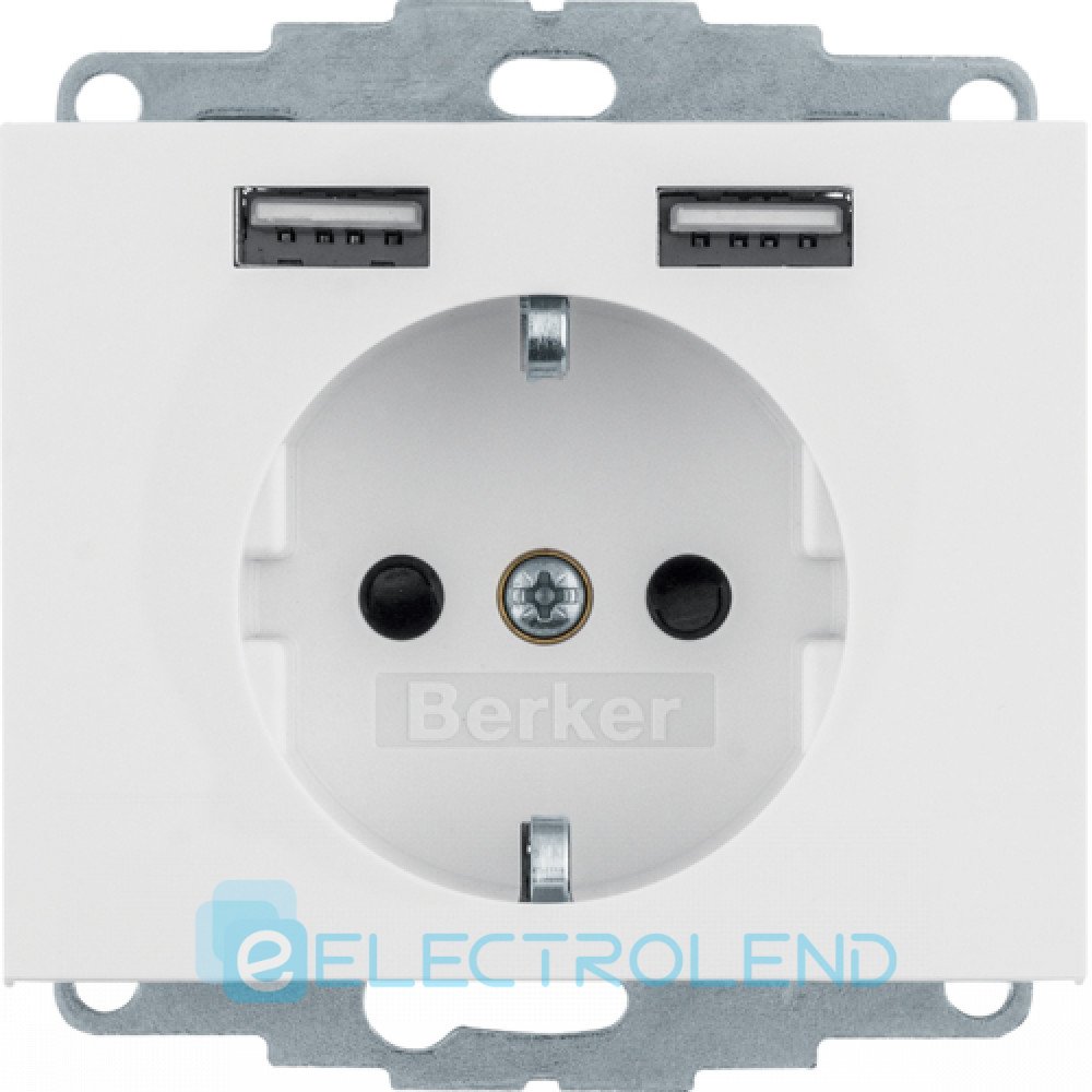 Розетка з з/к 16А/250В + 2хUSB A-A /2.4A, пол.білизна K.1 Berker 48037009