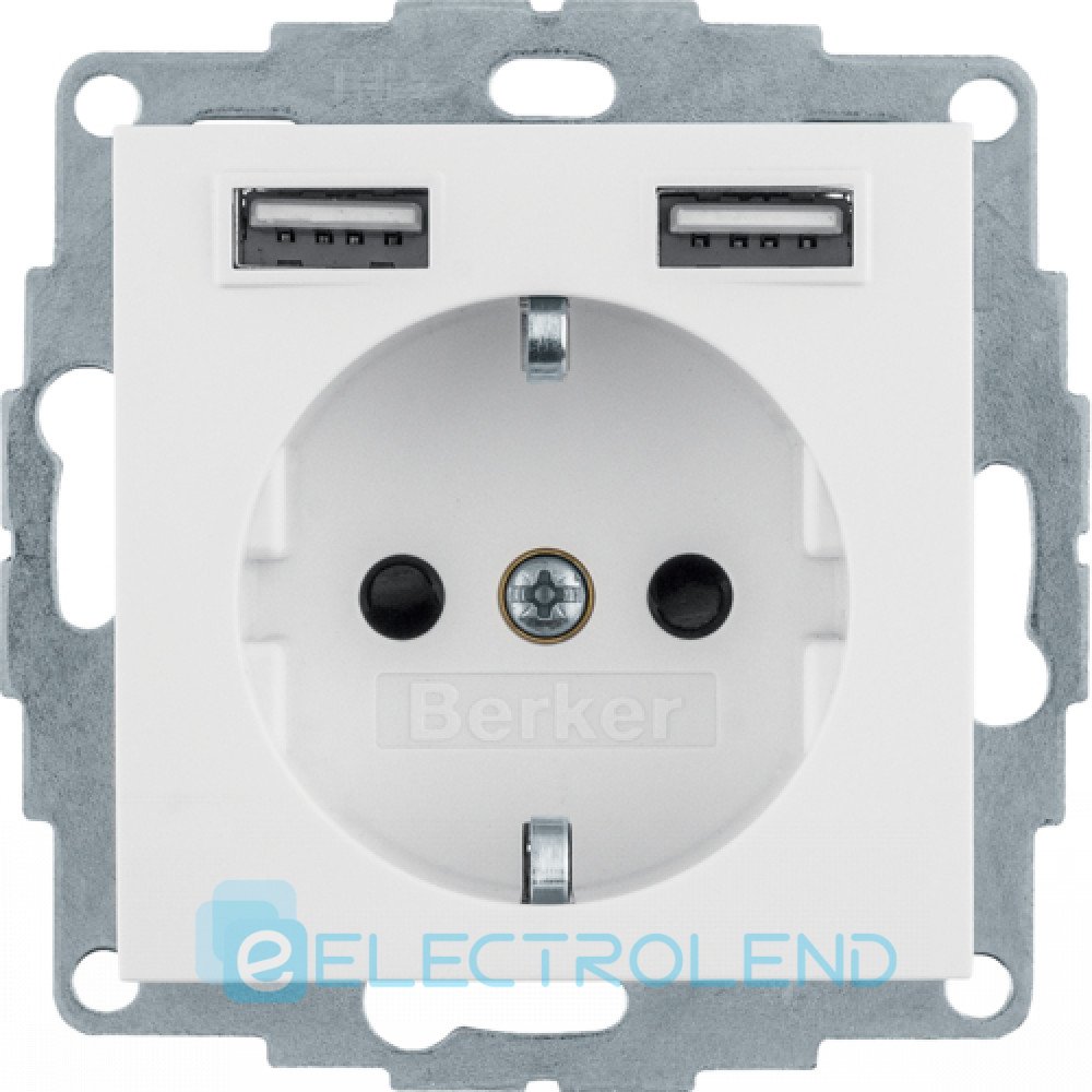 Розетка з з/к 16А/250В + 2хUSB A-A /2.4A, пол.білизна Q.x Berker 48036089