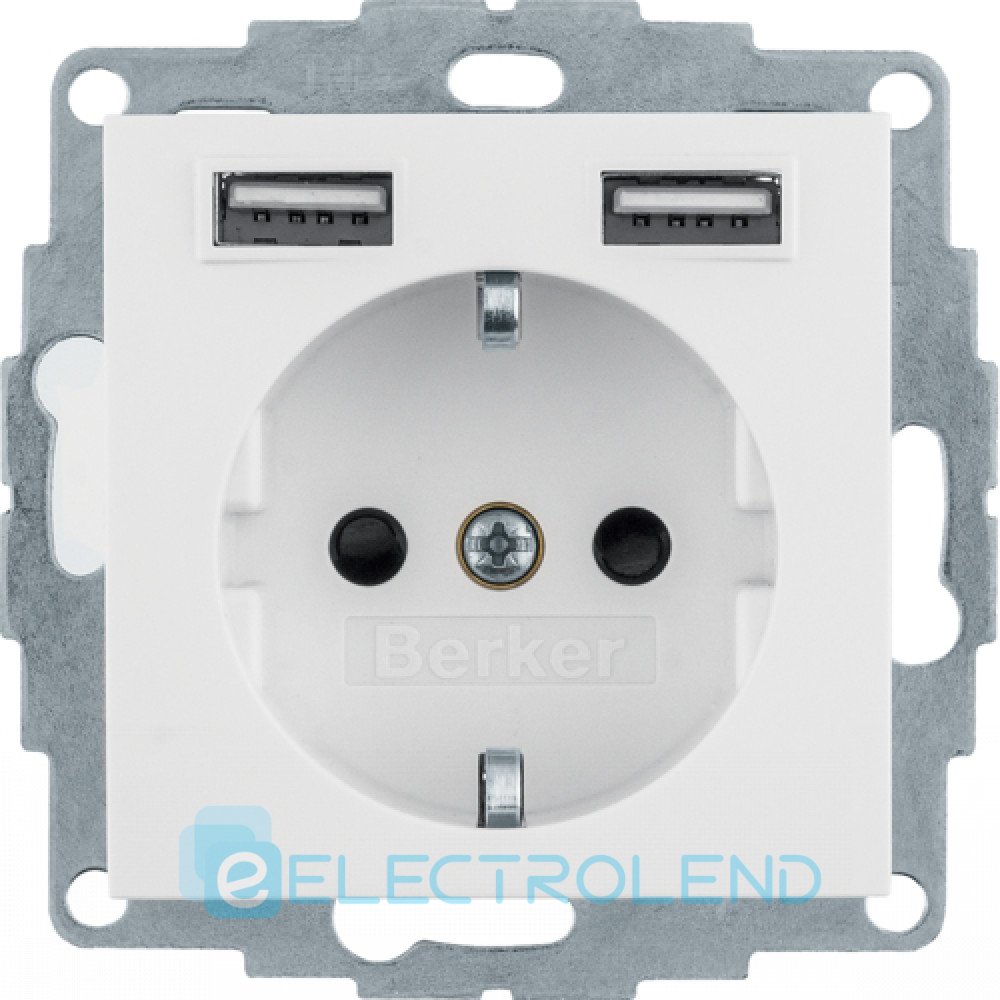 Розетка з з/к 16А/250В + 2хUSB A-A /2.4A, пол.білизна S.1 Berker 48038989