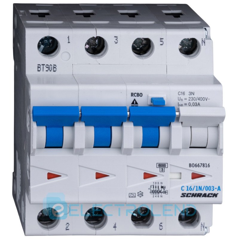 АВДТ 6кА/30мА 3P+N 16A х-ка C тип A Schrack BO667816