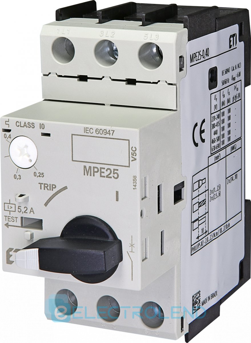 Автомат защиты двигателя MPE25-0,40 (0,25-0,4 А) ETI 4648003