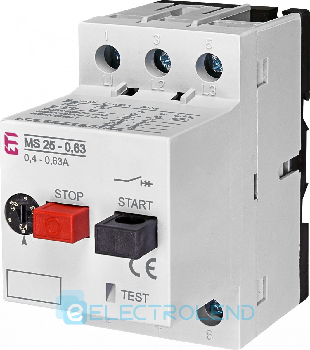 Автомат защиты двигателя MS25-0,63 (0,4-0,63 А) ETI 4600040