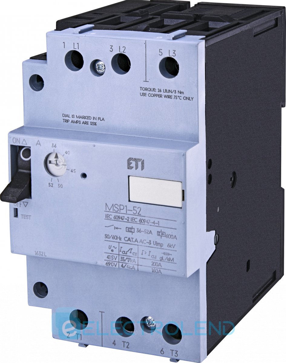 Автомат защиты двигателя MSP1-52 (22 кВт, 36-52 А) ETI 4646630
