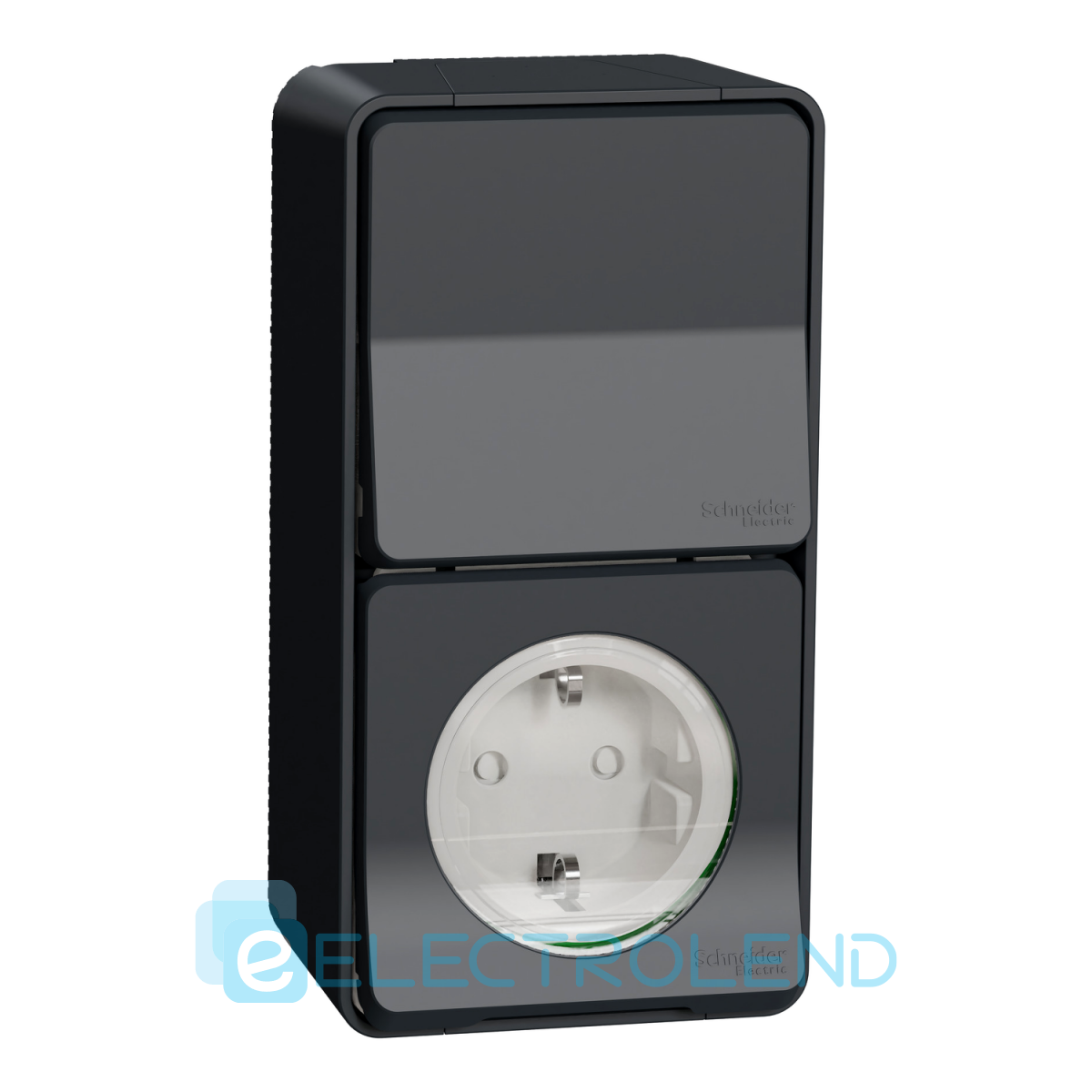 Блок розетка + переключатель 1-клавишный вертикальный Mureva Styl черный IP55, Schneider Electric