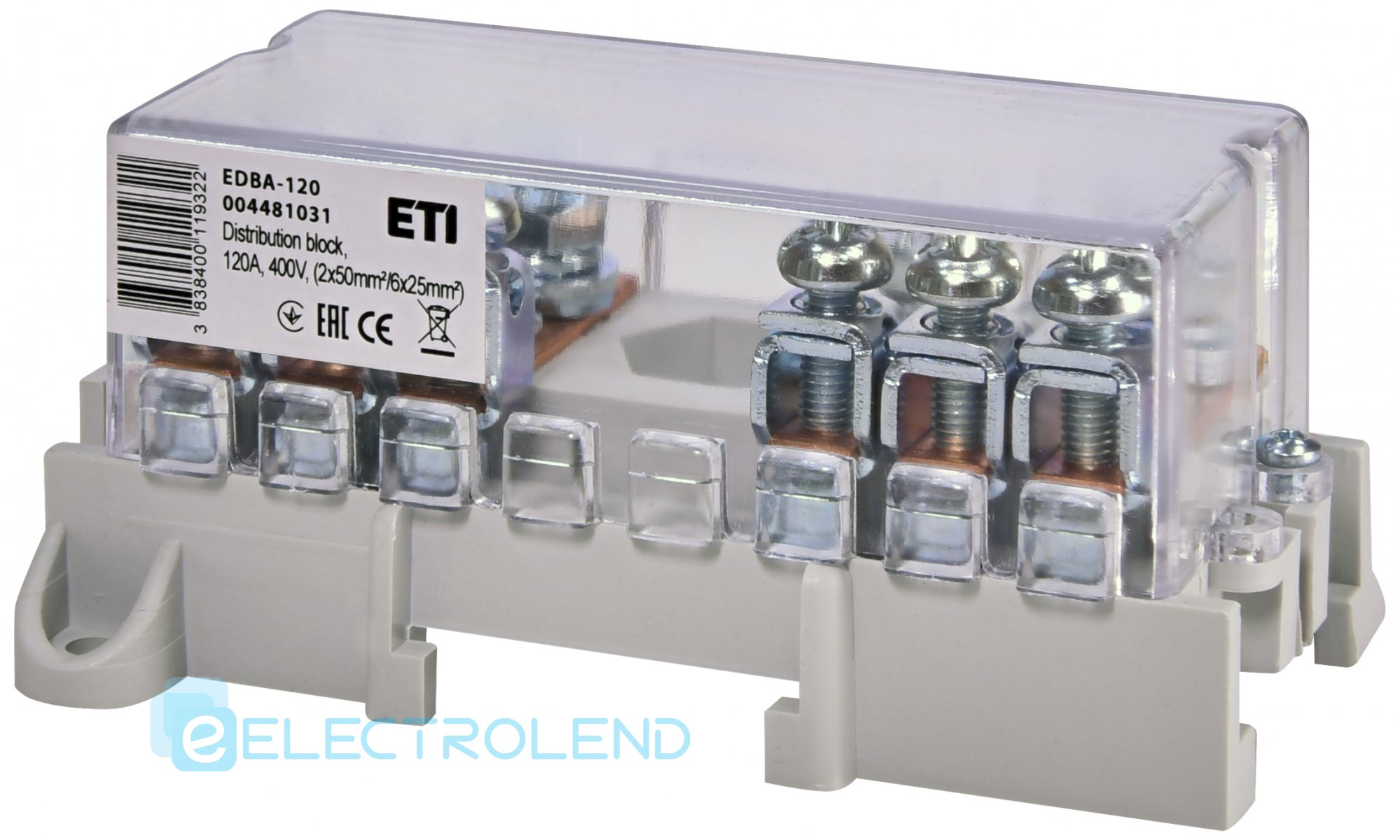 Распределительный блок EDBA-120 (120А, 400В, 2х50мм²/6х25мм²) ETI 4481031