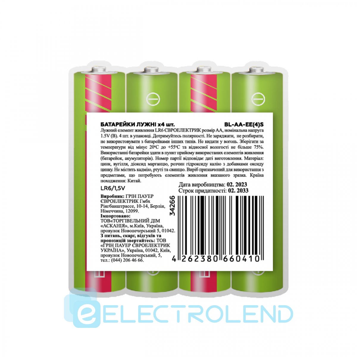 EUROELECTRIC Батарейка щелочная AA LR6 1,5V пленка 4шт (150) BL-AA-EE(4)S