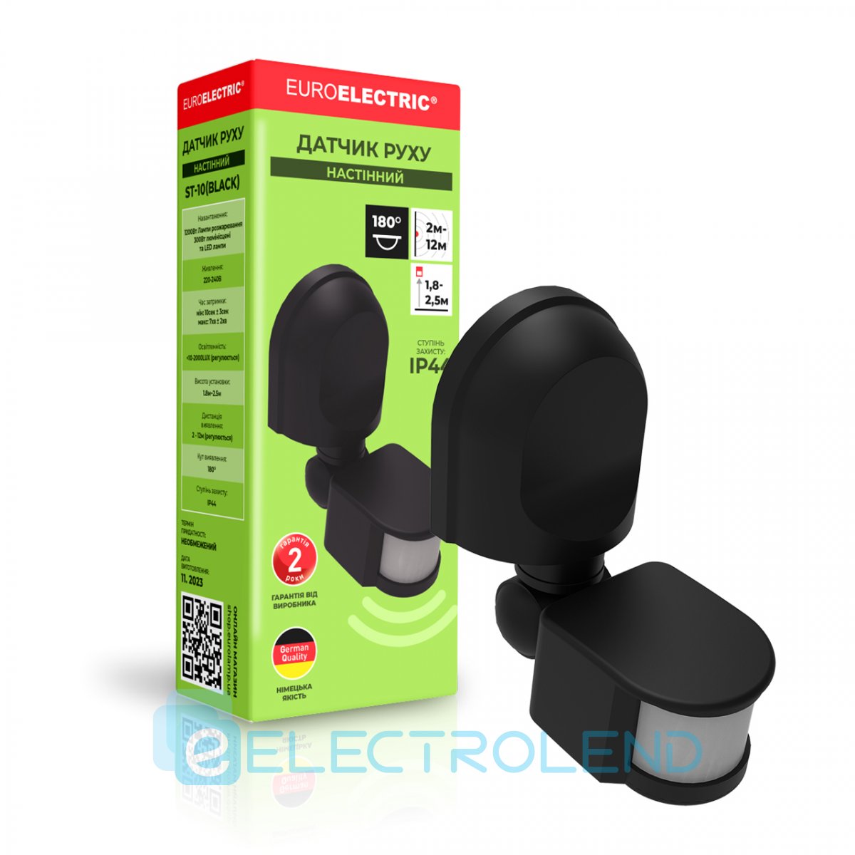 EUROELECTRIC Датчик движения настенный 180` макс. 2-12 м черный (50) ST-10(black)