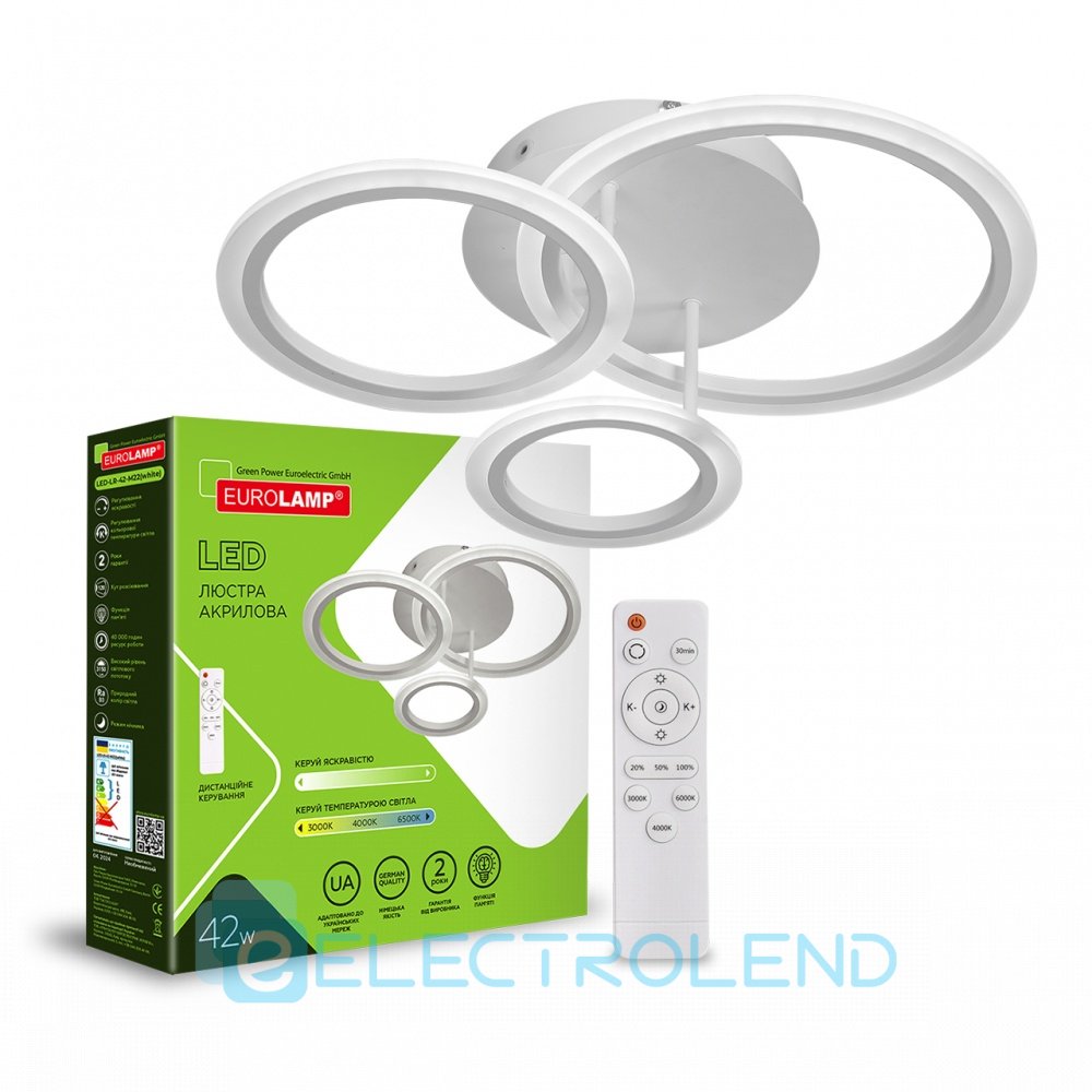 EUROLAMP LED Люстра светодиодная акриловая круглая M22 42W 3000-6500K белая (5) LED-LR-42-M22(white)