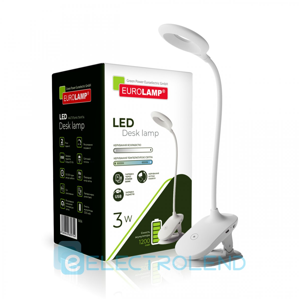 EUROLAMP LED Свет. настольный SMART 3W 6000-6500K dimmable USB+BATTERY white (60) LED-TLB-3W(white)USB
