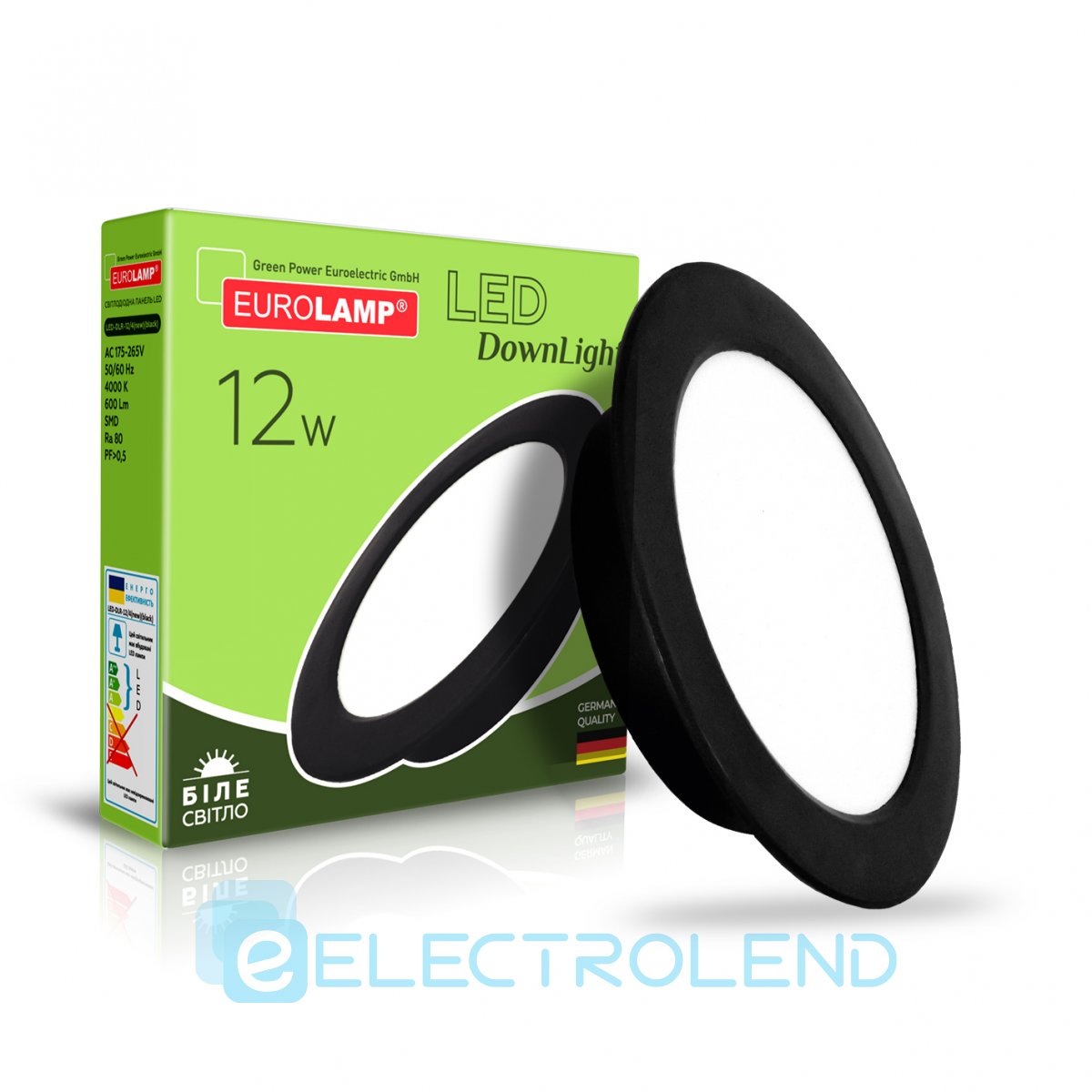 EUROLAMP LED Светильник круглый встраиваемый Downlight NEW 12W 4000K черный (40) LED-DLR-12/4(new)(black)