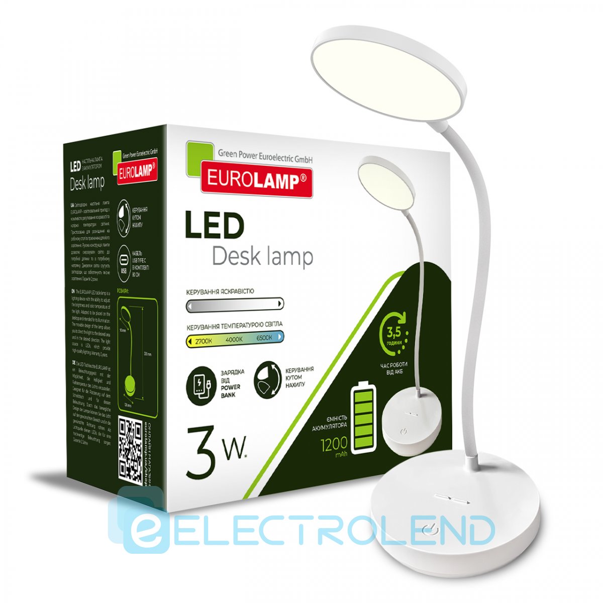 EUROLAMP LED Светильник настольный SMART 3W 2700-6000K dimmable USB+BATTERY white (80) LED-TLB-3W(white)USB(A)