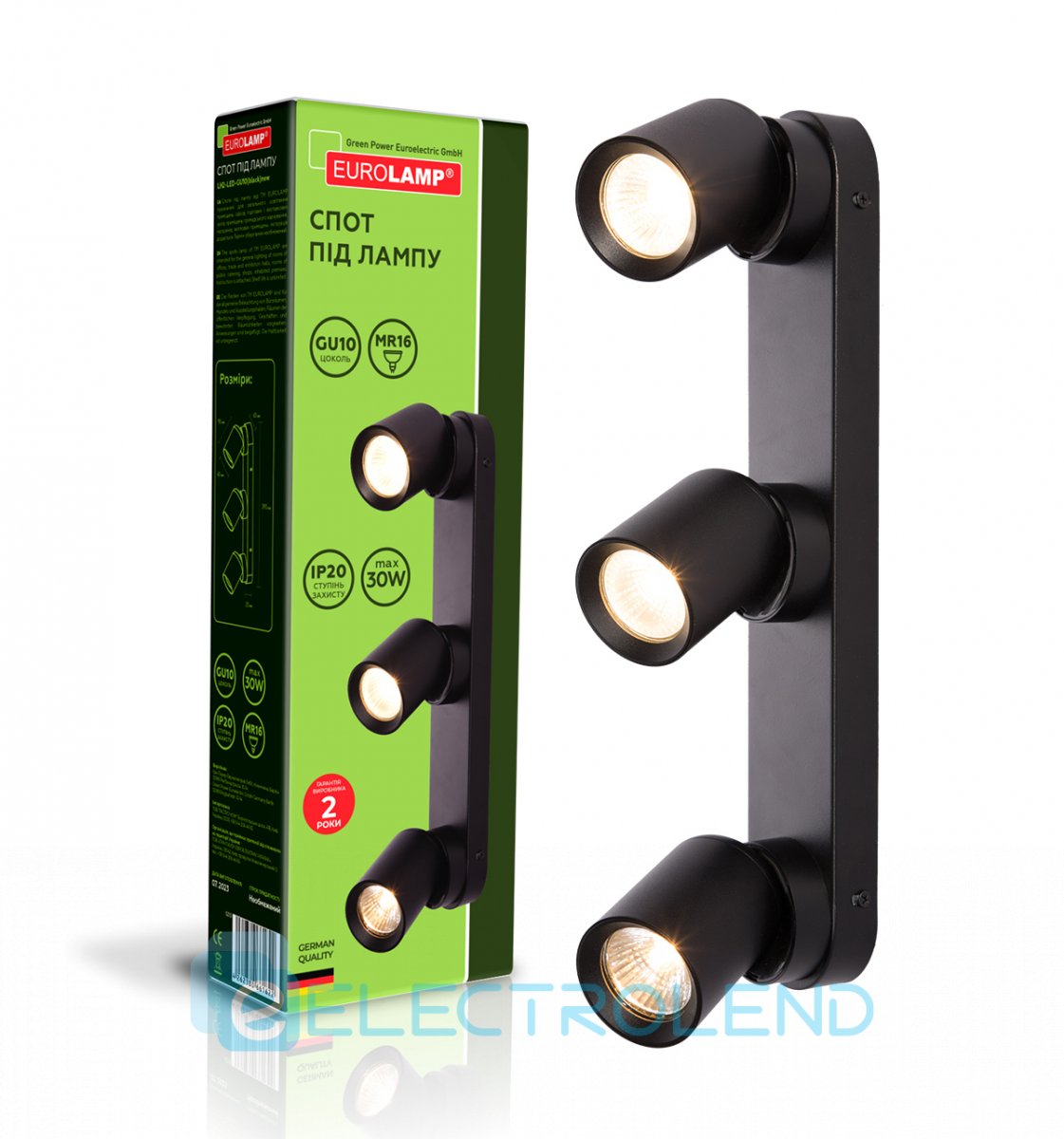 EUROLAMP LED Светильник спот для ламп LED GU10x3 черный new (12) LH3-LED-GU10(black)new