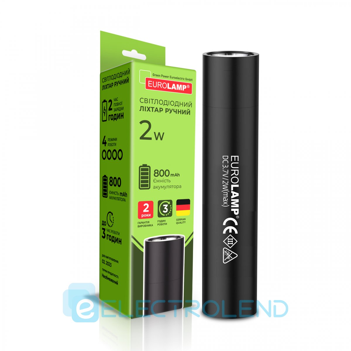 EUROLAMP Светодиодный фонарь ручной 2W battery+USB черный (132) FLASH-2W(black)