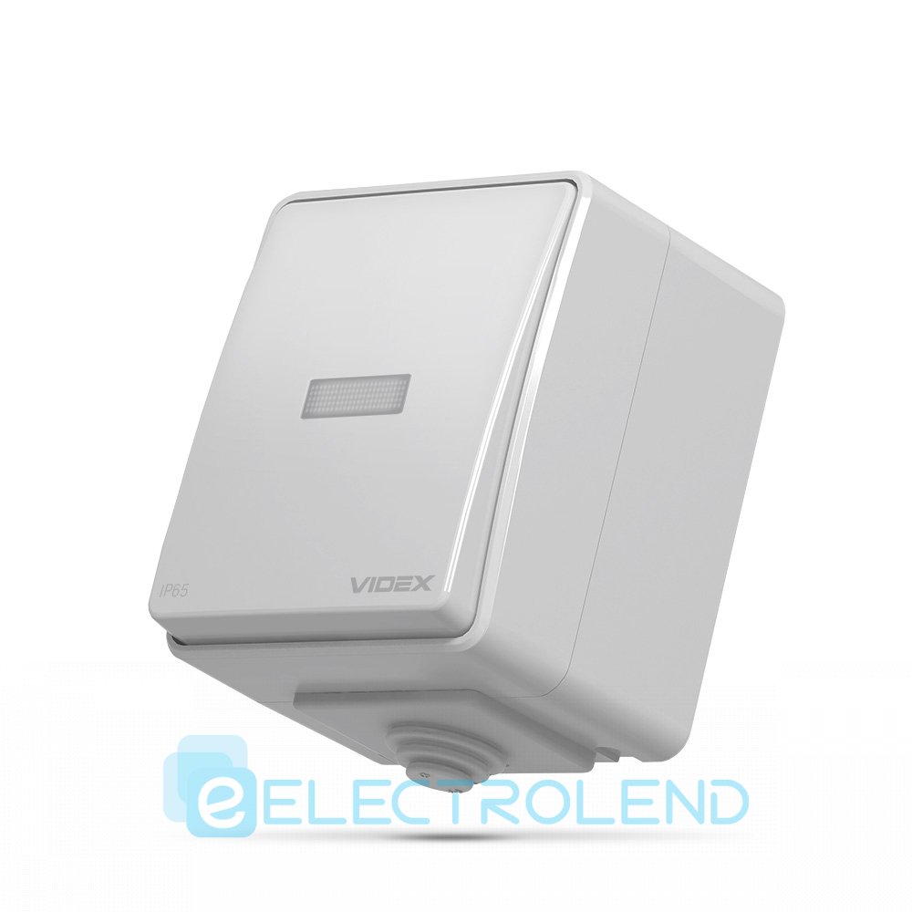 IP65 Выключатель внешний одноклавишный с подсветкой серый VIDEX BINERA