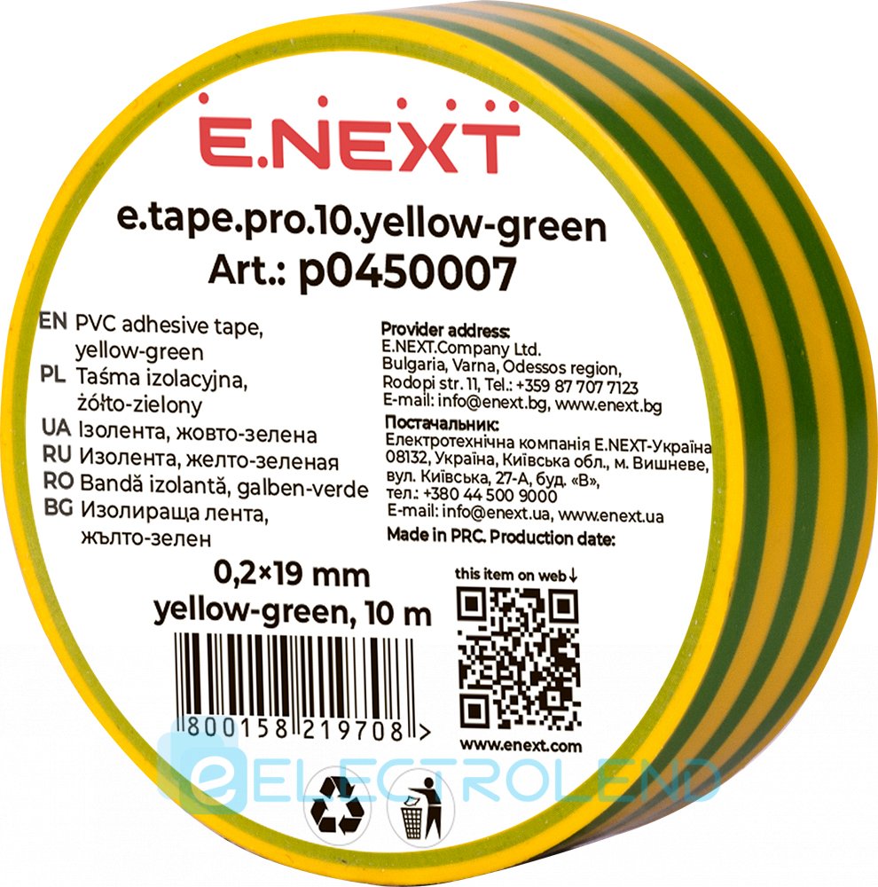 Изолента e.tape.pro.10.yellow-green из самозатухающего ПВХ, желто-зеленая (10м) p0450007