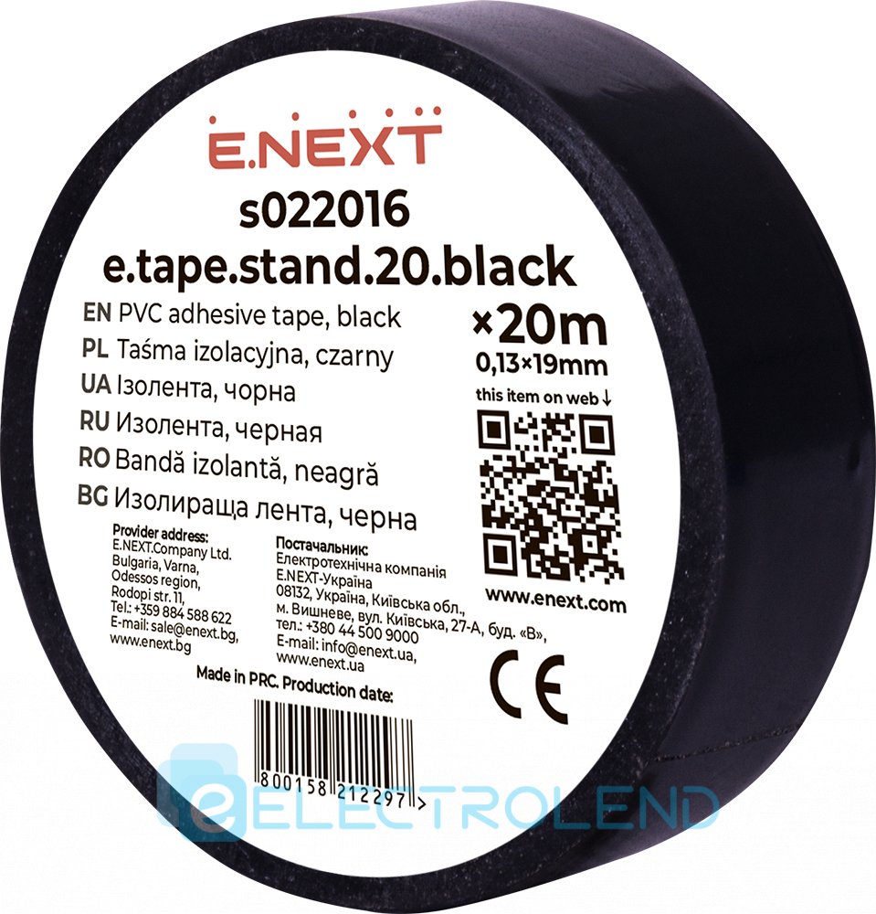 Изолента e.tape.stand.20.black, черная (20м) s022016