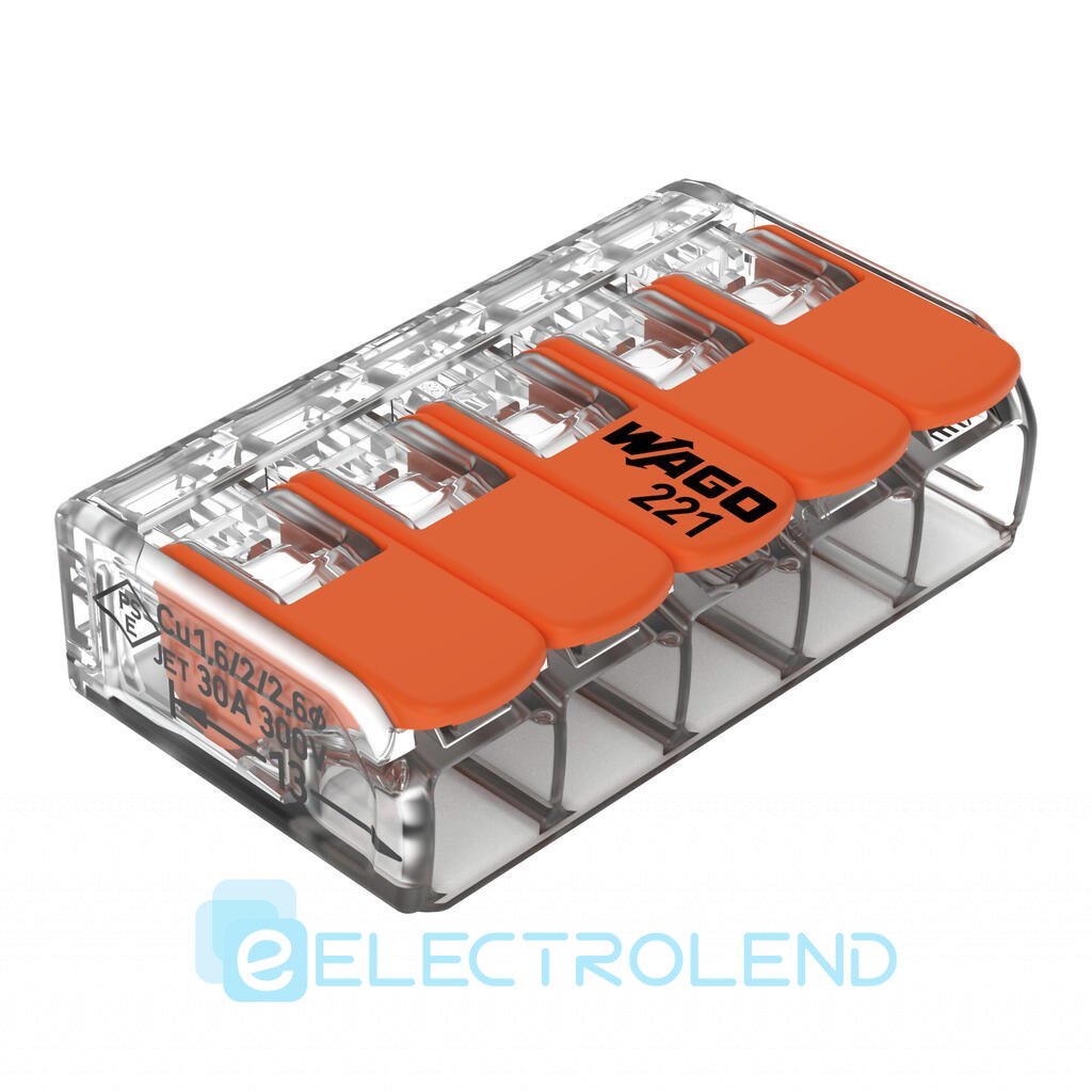 Клема на 5 проводов 6 мм.кв. 41 А WAGO