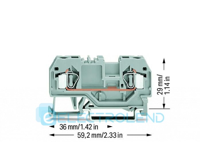 Клемма проходная с пружинным зажимом наборная 2-проводная 4,0 мм² серая, WAGO