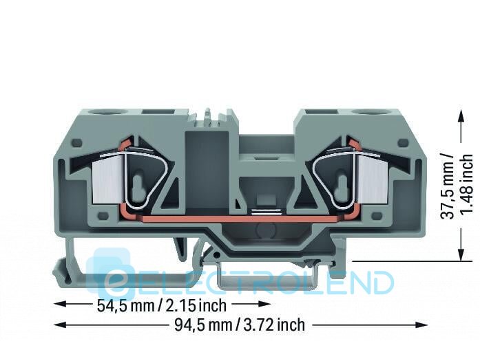 Клема проходная с пружинным зажимом наборная 2-проводная 16 мм² серая, WAGO