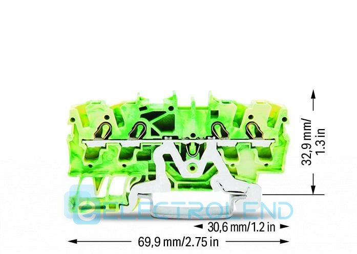 Клемма Wago 2002-1407 Topjob S с заземлением 2,5-4 мм² (желто-зеленая)