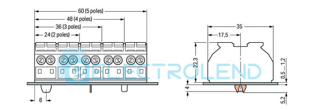 Клемма Wago 862-9515 1+3+5 PE-N-L1-L2-L3