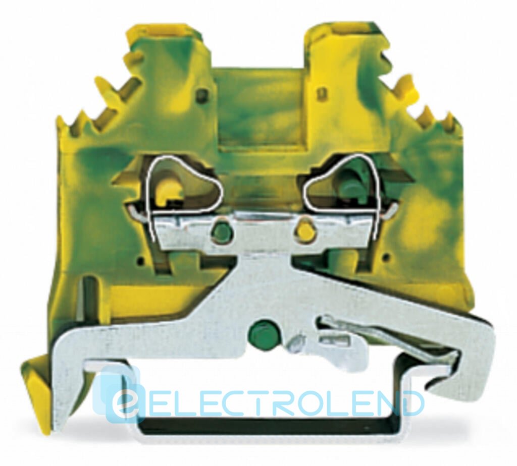 Клема заземления с пружинным зажимом наборная 2-проводная с боковым подключением 2,5 мм² желто-зеленая, WAGO