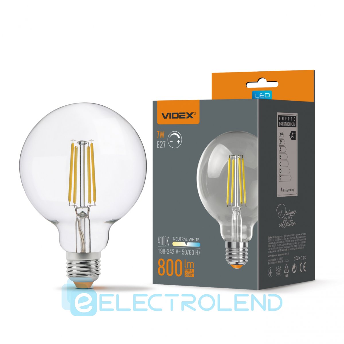 LED лампа VIDEX Filament G95FD 7W E27 4100K диммируемая
