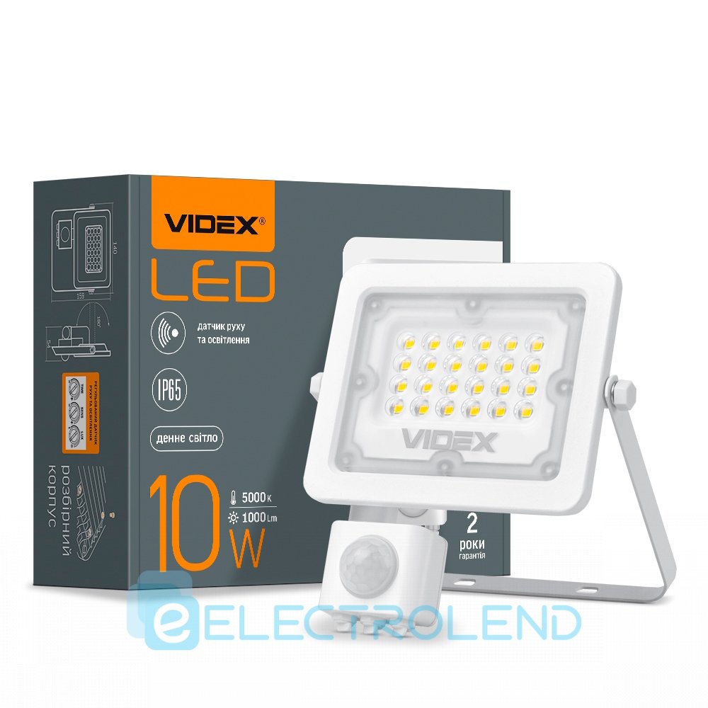 LED прожектор VIDEX F2e 10W 5000K с датчиком движения и освещенности