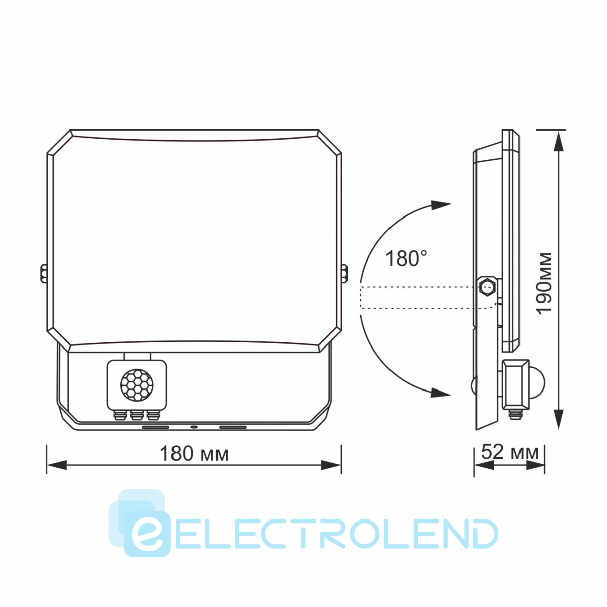LED прожектор VIDEX F3 50W 5000K с датчиком движения 220V Black (VLE-F3-0505B-S)