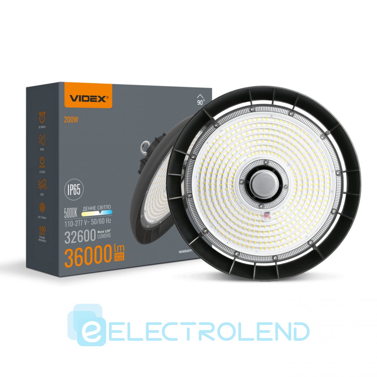 LED светильник высотный ХайБей VIDEX 200W 5000K 36000Lm Черный