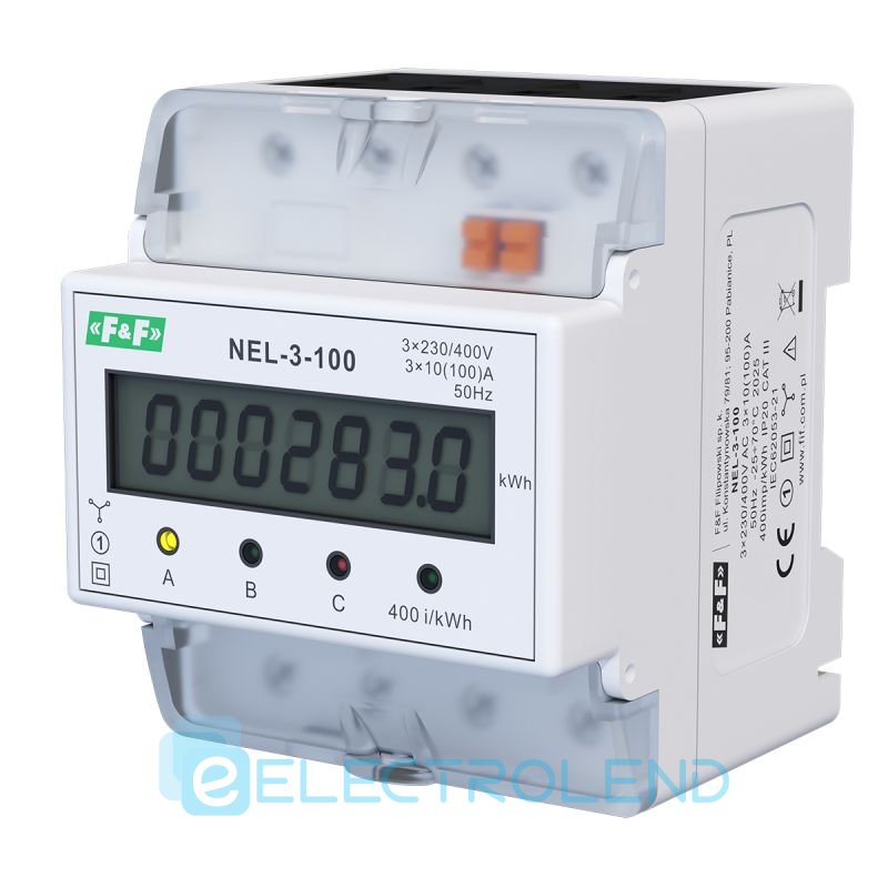 Счетчик электроэнергии трехфазный NEL-3-100 100A 3×230/400В F&F