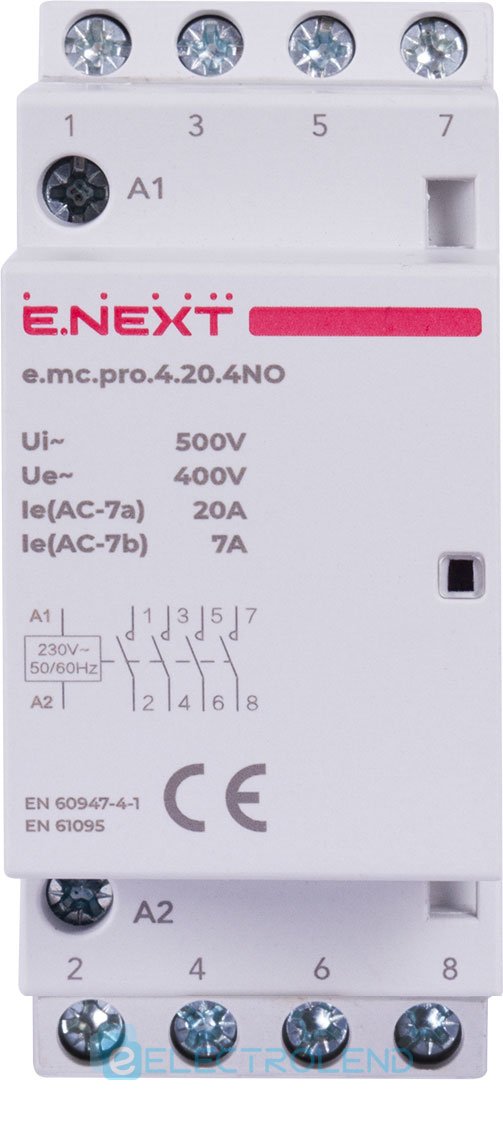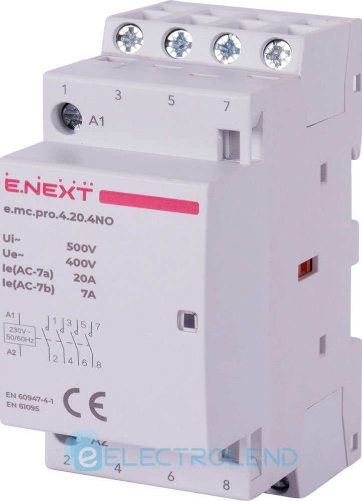 Модульный контактор e.mc.pro.4.20.4NO, 4р, 20А, 4NO, 220В p005219 E.NEXT
