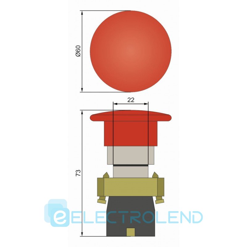 Кнопка безопасности PB2-ВS642, красная, Ø22mm, грибок – Ø60mm, NC возврат поворотом Electro
