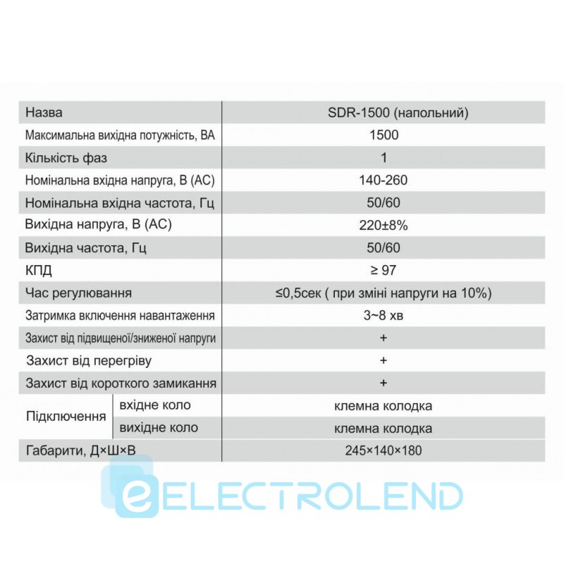 Стабилизатор напряжения SDR-1500 электронный 1,5 кВА Electro