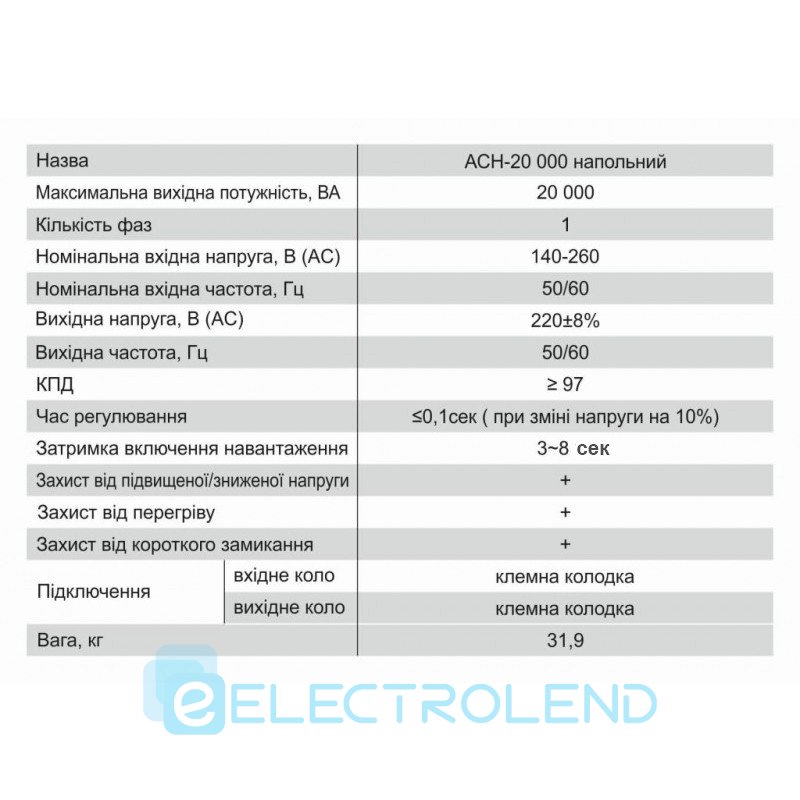 Стабилизатор напряжения АСН-20000 электронный 20,0 кВА Electro