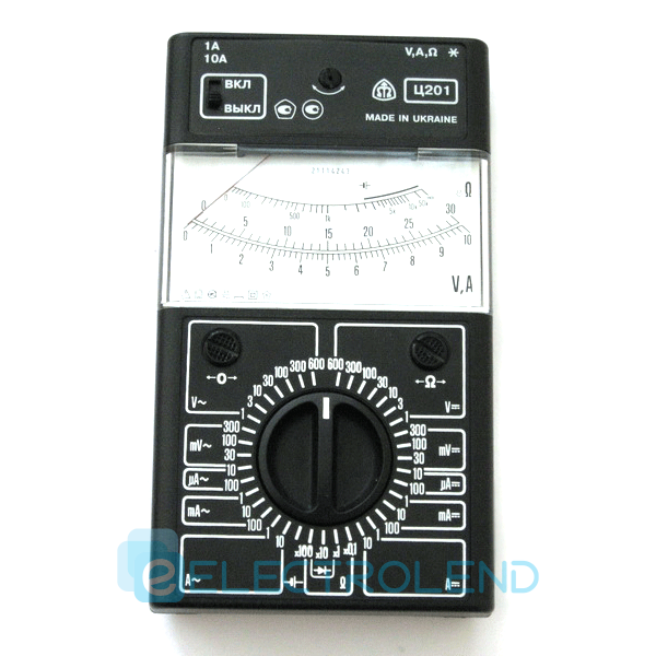 Прибор электроизмерительный многофункциональный Ц201 предназначен для измерения силы и напряжения постоянного тока, среднеквадратического значения силы и напряжения переменного тока синусоидальной формы кривой, сопротивления постоянному току.