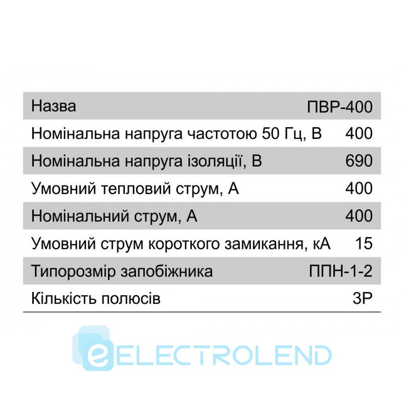 Выключатель-разъединитель ПВР 2 3 полюса, 400А, к 690В, АС, горизонтальний, Electro